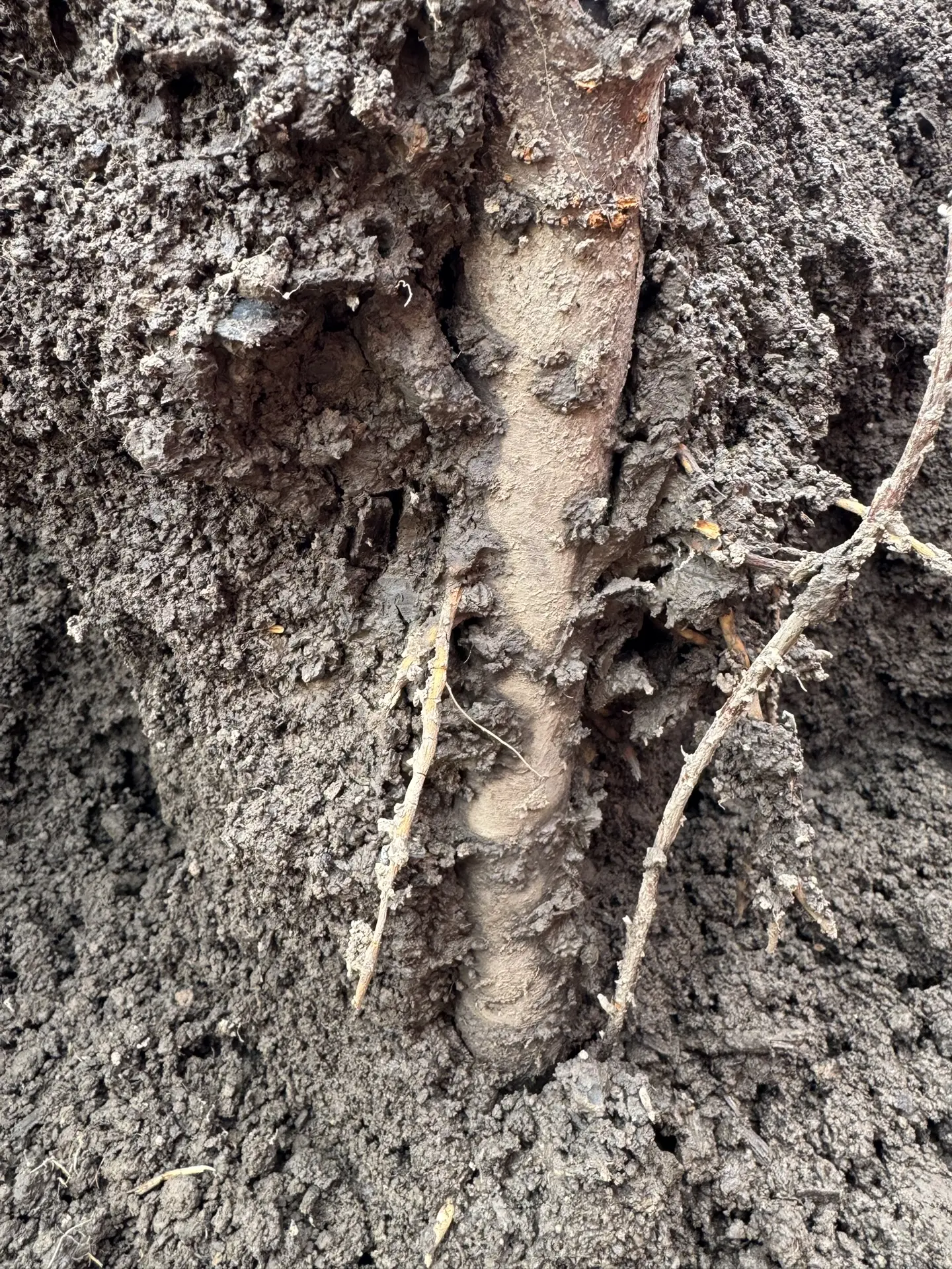 На сливе, что засыпана была ещё с осени грунтом (это верхний плодородный слой суглинка), выросли корни. Вот тебе и загнивание корневой шейки.