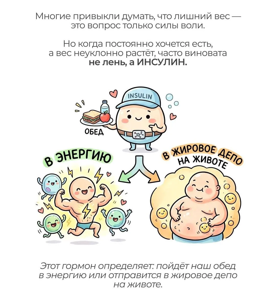 Этот гормон определяет: пойдёт наш обед в энергию или отправится в жировое депо на животе.