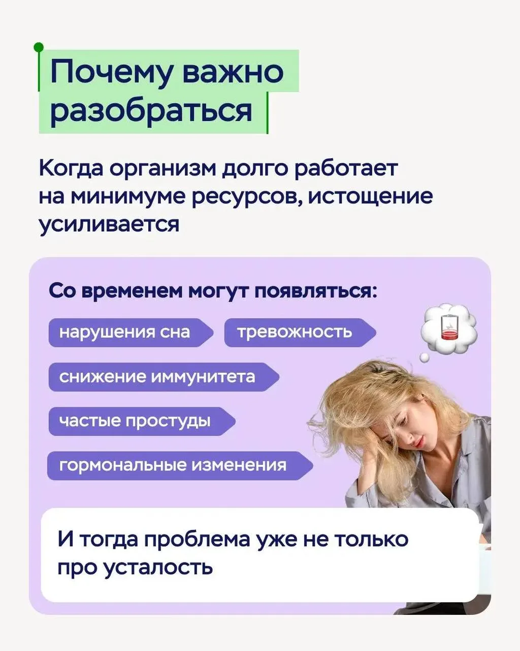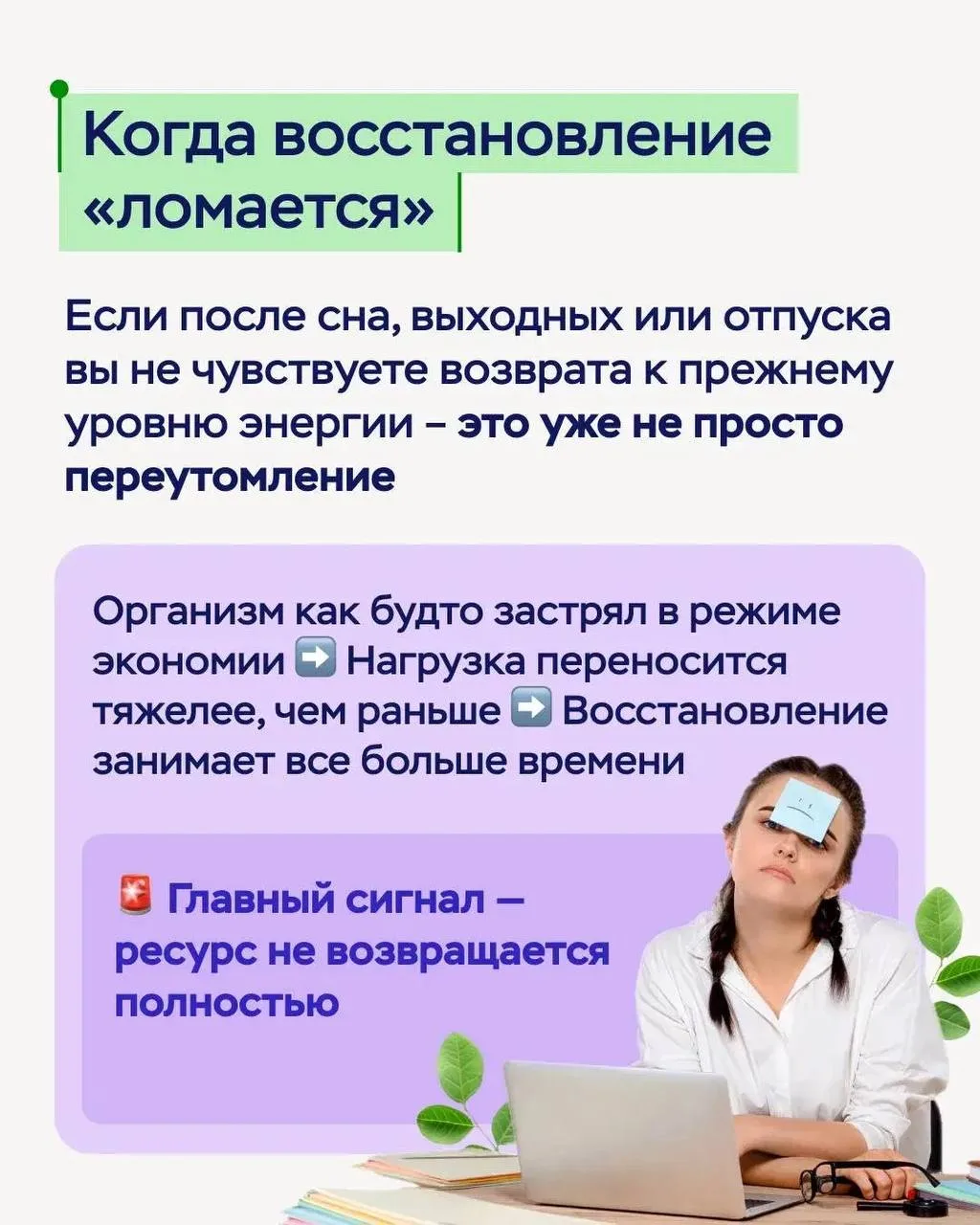 👉 В карточках разберем, как отличить обычную усталость от системного истощения и что можно сделать, чтобы вернуть ресурс.