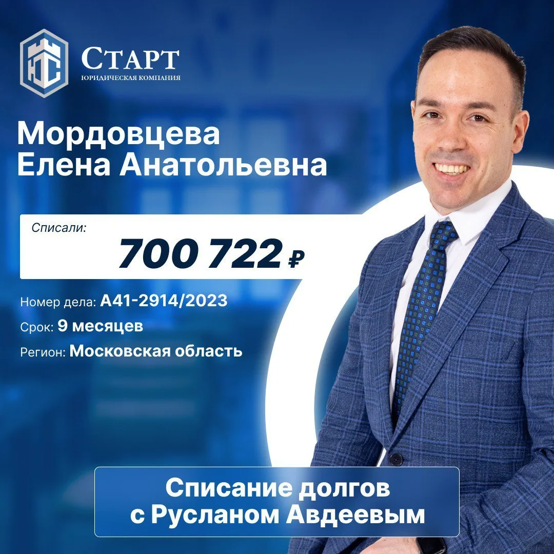 🎉 Поздравляем Мордовцеву Елену Анатольевну с успешным завершением процедуры банкротства! Это важный шаг к новому началу, и мы рады, что Вы выбрали нас для сопровождения этого этапа вашей жизни. 😊