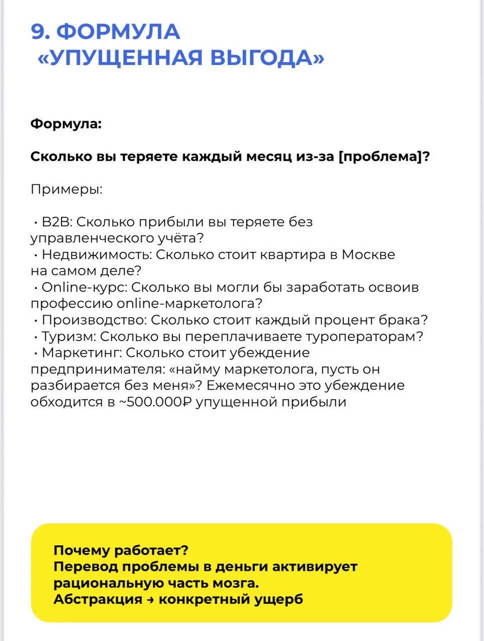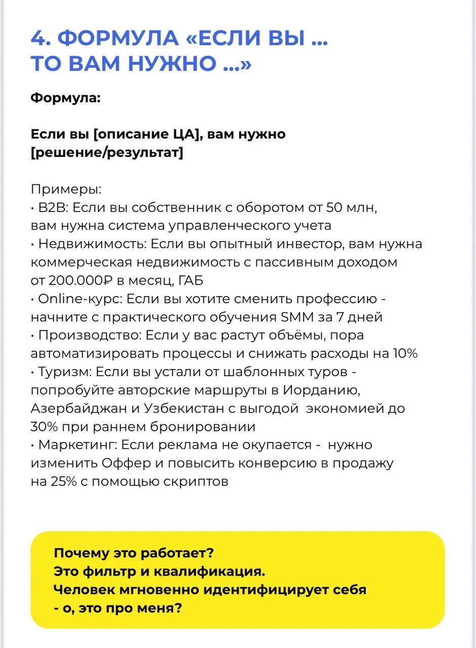 Сохраните пост, перешлите сммщику, который ведет ваши соц. сети, отправьте своему таргетологу и чекните за одно - есть ли в ваших рекламных объявлениях и в заголовках постов в соц.сетях хотя бы одна из этих формул, ок?