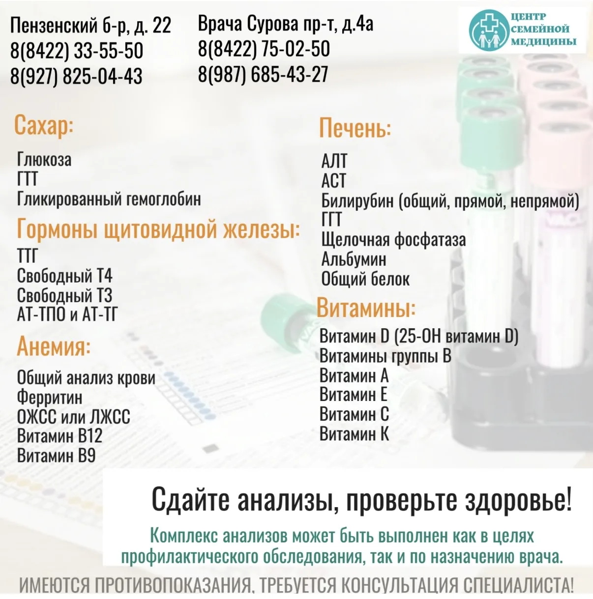 В нашем медицинском центре вы можете сдать анализы по адресу : пр-кт Врача…