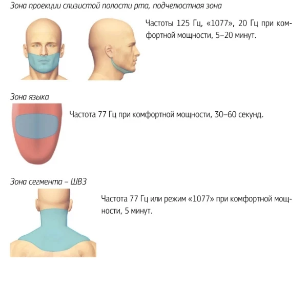 На рисунках, которые прикреплены к этому посту, показаны зоны воздействия аппаратом, частоты и время процедуры при разных ситуациях помощи.