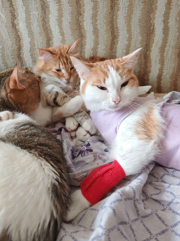 Операцию провели вчера вечером, а наутро привезла Белянку домой. Кошка по-прежнему отказывалась от еды, после стресса и самой операции, и нахождения вне дома (забивалась в дальний угол клетки в стационаре).