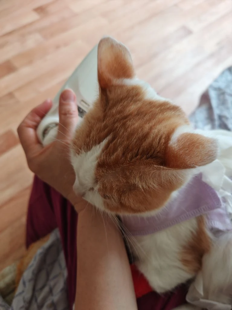 Постепенно киска начала мурлыкать и все время спокойно лежала у меня на коленях (см. видео). К вечеру с аппетитом 1й раз поела.
