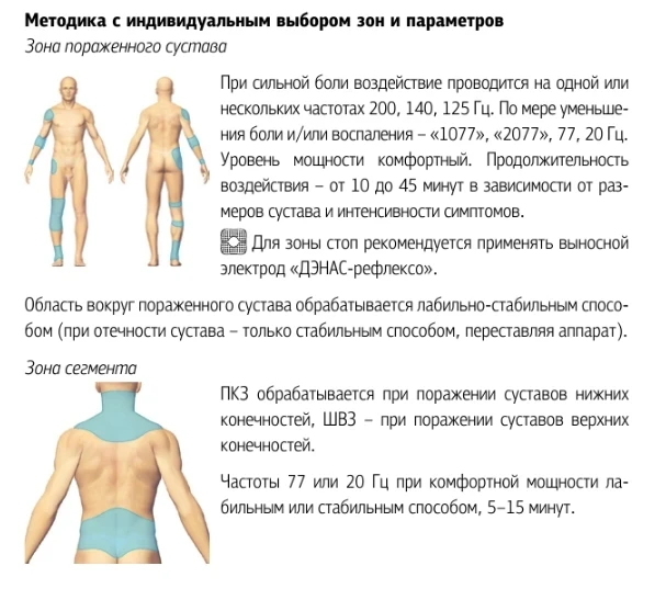 Если вручную, то при выраженной боли используем высокие частоты 200, 140, 125 Гц, а затем переходим к основным лечебным 77, 60, 20 Гц.
