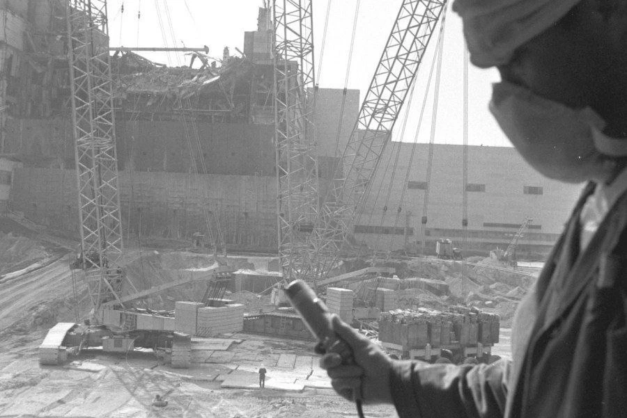 ☢️ Ликвидатор измеряет уровень радиации после аварии... редкое фото