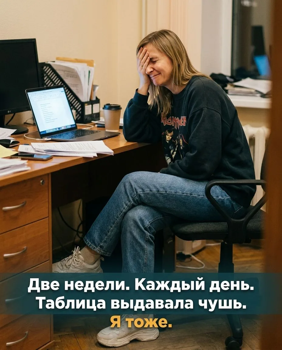 И я решила: сделаю такую же. Только лучше. Только для себя. Только идеально. 😏Две недели. Каждый день. Таблица упорно выдавала чушь.