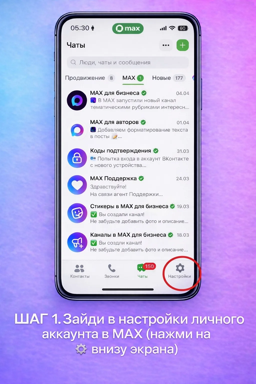 1. Зайди в настройки личного аккаунта в МАХ