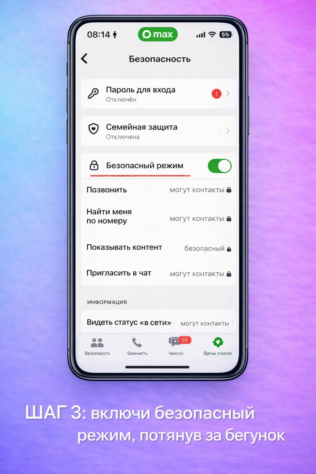 3. Включи «Безопасный режим»