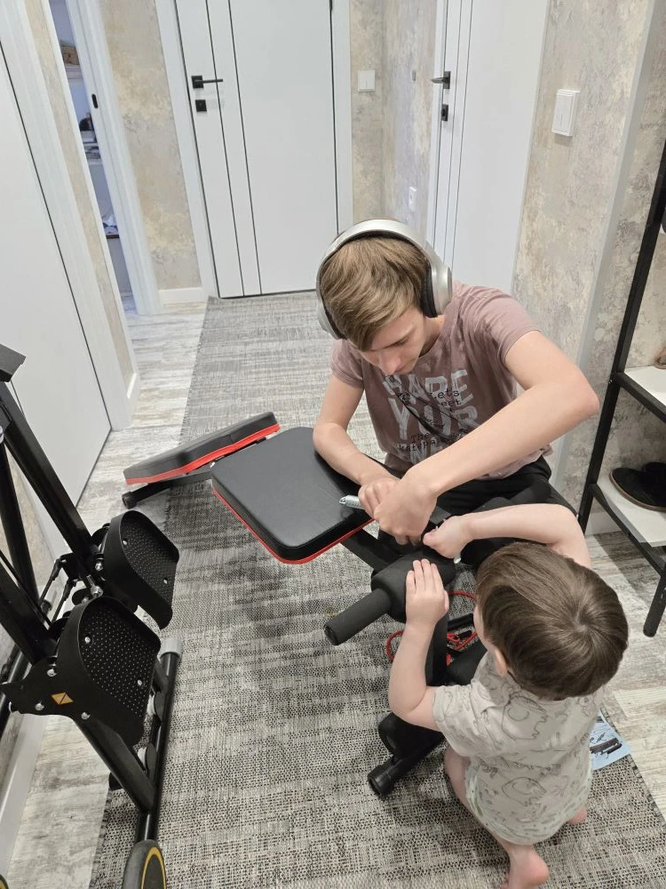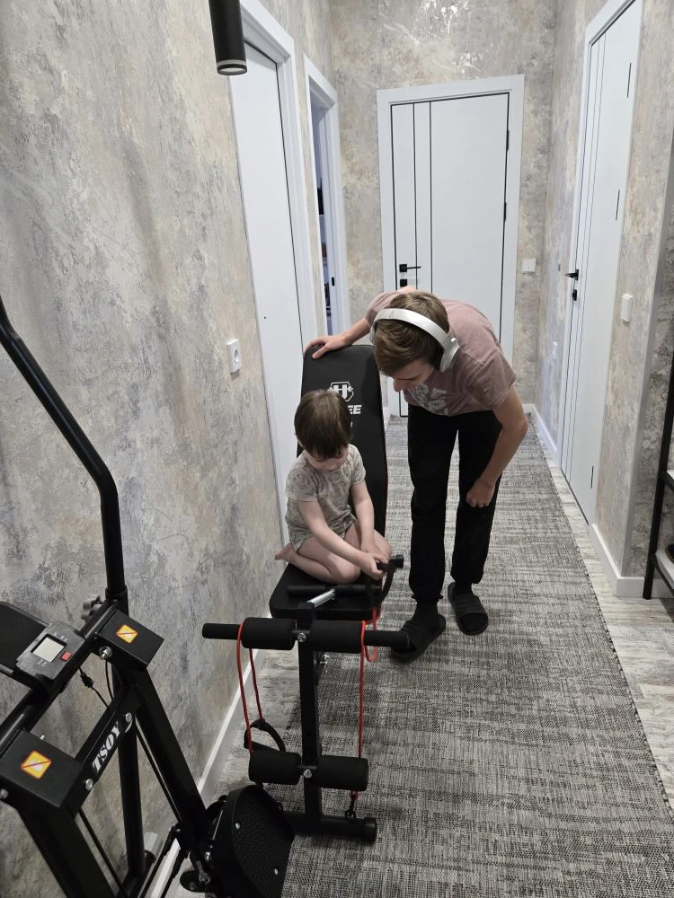Без них вообще ничего не происходит в этом доме. Старший таскал коробки и собирал, младший пытался сесть на скамью, как на лошадку.