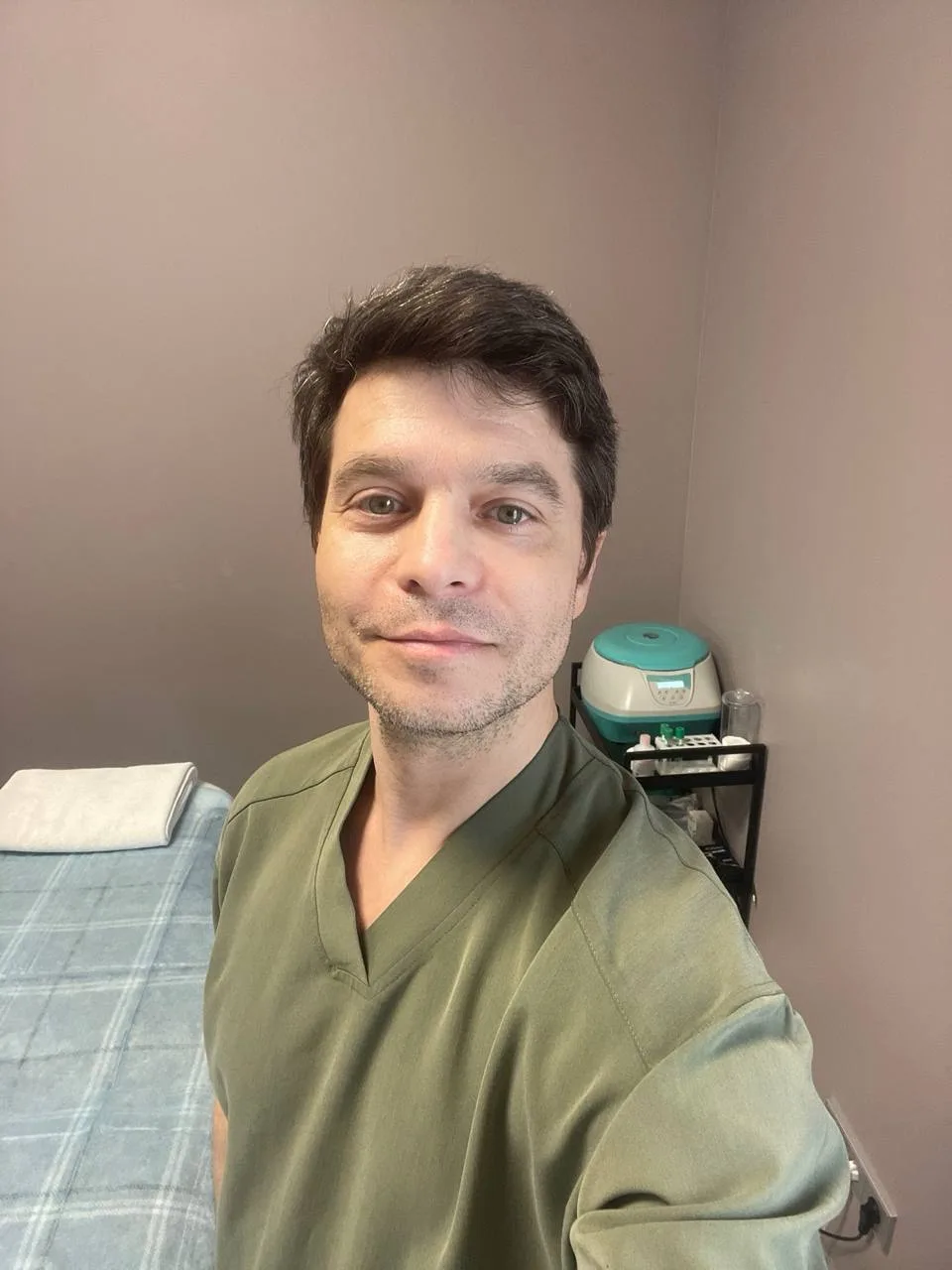 И многие из вас спрашивают: «Что за моейспиной всё время делает центрифуга?» Спомощью неё я из вашей крови отделяюплазму и ставлю инъекции в суставы, вмышцы, в места воспалительного процесса.Так как ваша плазма крови — это самыйбезопасный путь восстановления суставов имышц после механических ипсихологических повреждений.