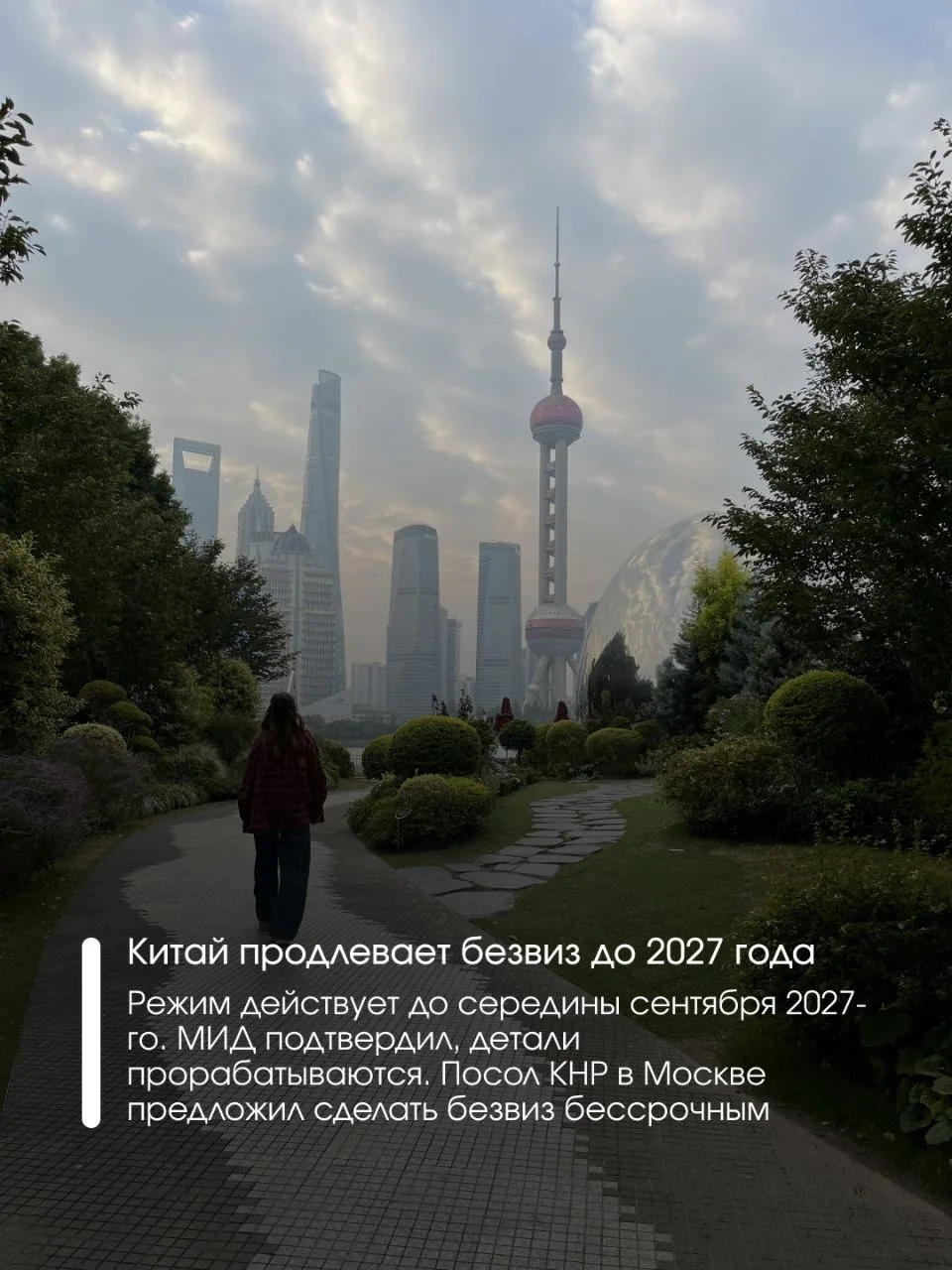 🇨🇳 Китай продлевает безвиз до 2027 года