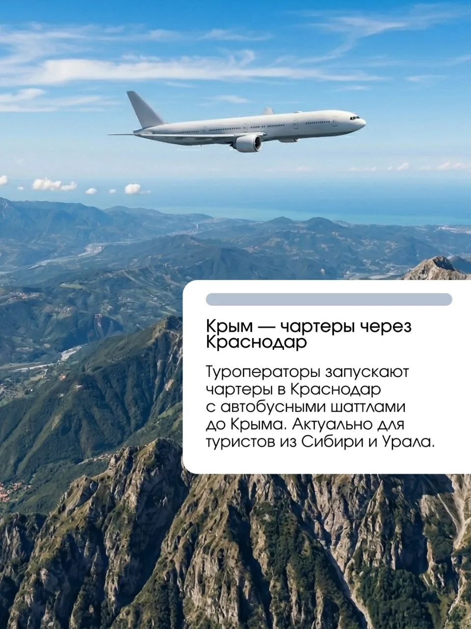 Туроператоры запускают чартеры в Краснодар с автобусными шаттлами до Крыма. Актуально для туристов из Сибири и Урала.