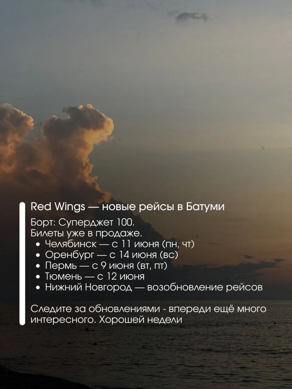 ✈️🇬🇪 Red Wings — новые рейсы в Батуми