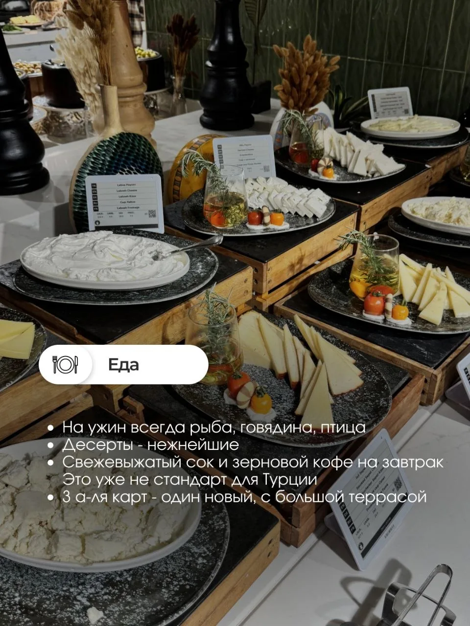 Всё вкусно. На ужин всегда рыба, говядина, птица. Десерты нежнейшие. Свежевыжатый сок и зерновой кофе на завтрак - уже не стандарт для Турции. Плюс три а ля карт, один из них новый с большой террасой.