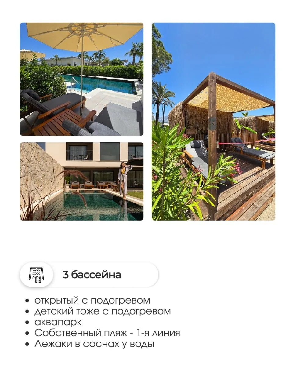 ✅ 3 бассейна - открытый с подогревом, детский тоже с подогревом, аквапарк для взрослых