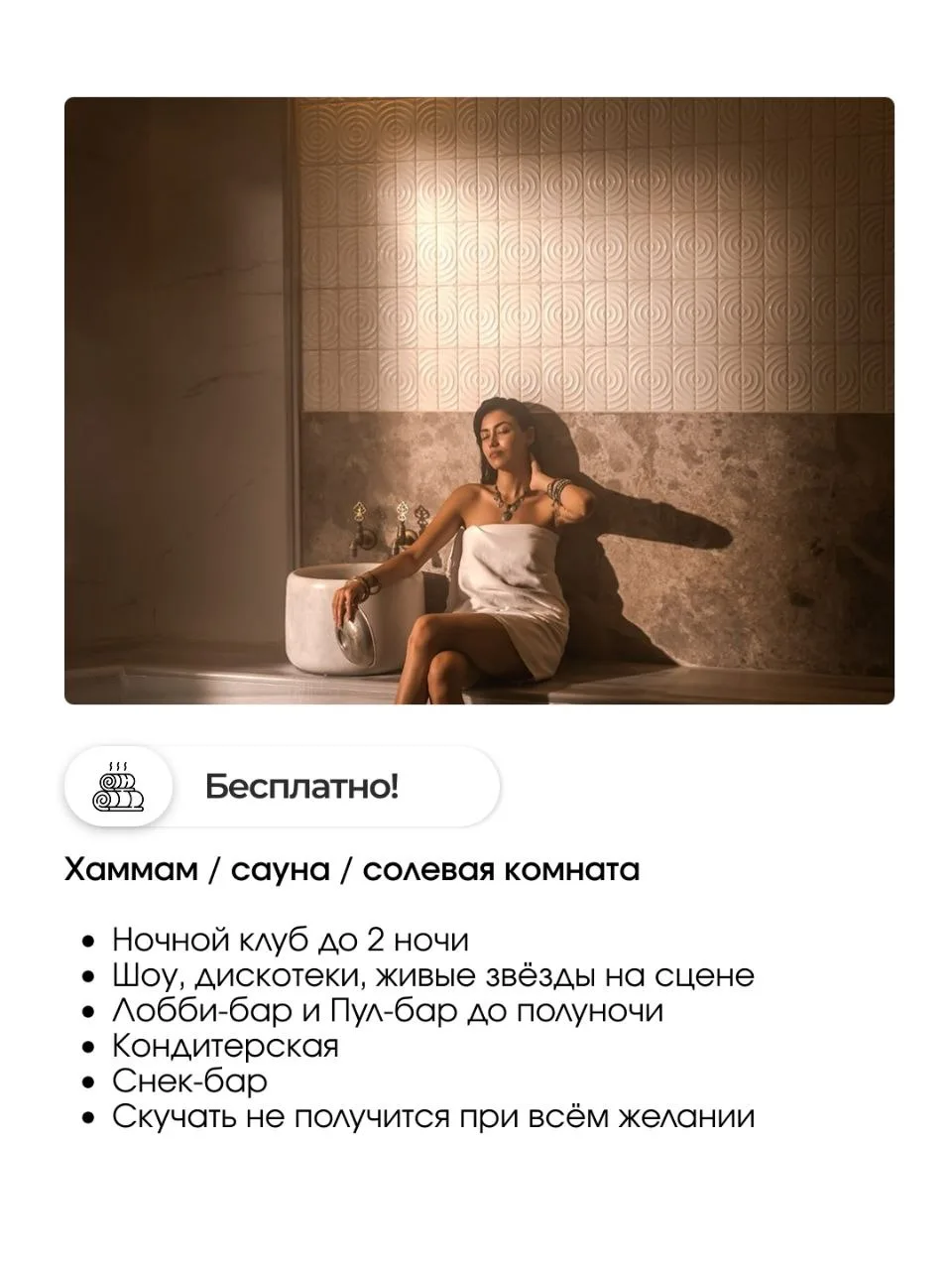 ✅ Спа бесплатно - солевая комната, хаммам, сауна