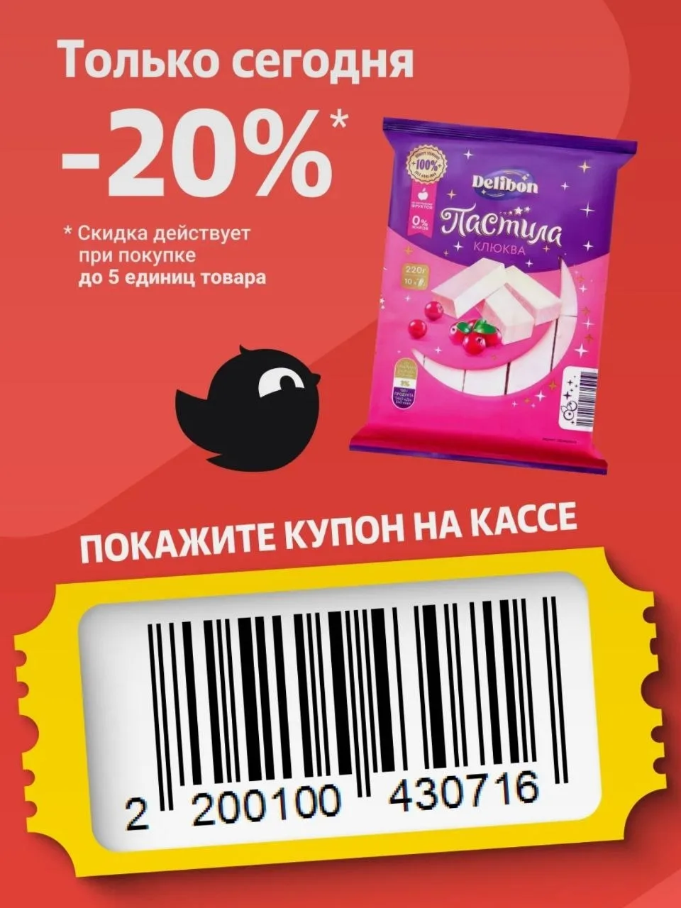 Купон на скидку 20% в Чижике на пастилу Delibon🔥