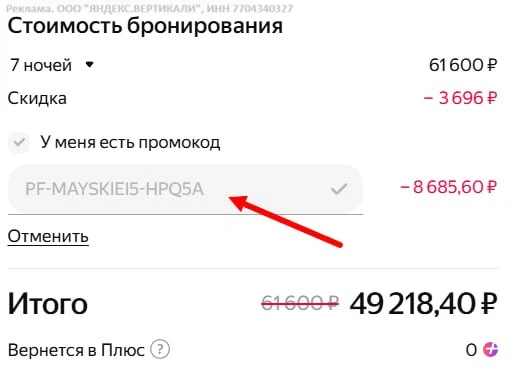 Снова хорошая скидка до 50 000₽ на одно бронирование отелей или апартаментов…