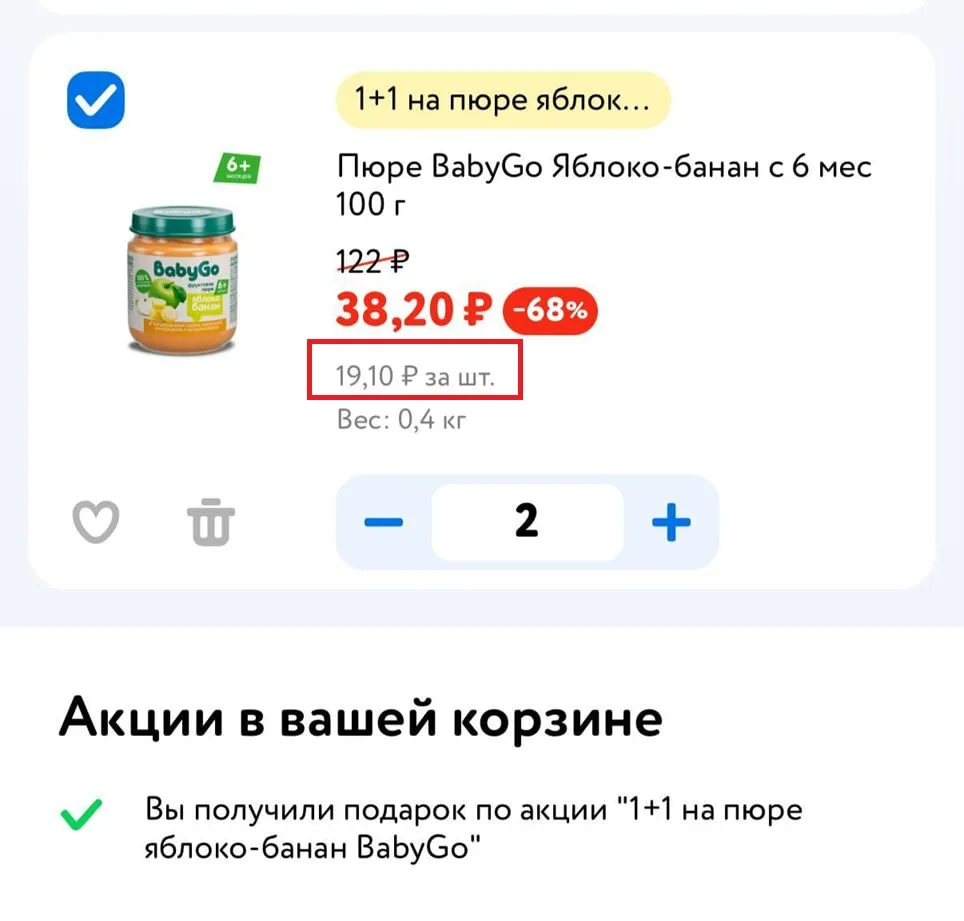 Акция 1+1 на пюре яблоко-банан BabyGo в Детском мире🔥
