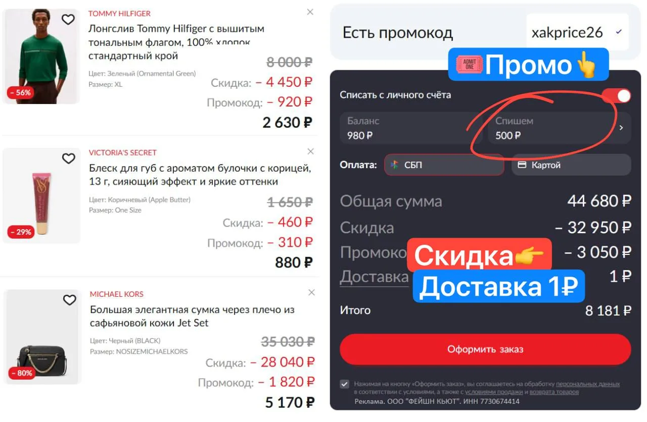 xakprice26 — скидка 26% ВСЕМ от 3 000₽. Вводим именно его, он даст самую выгодную скидку.