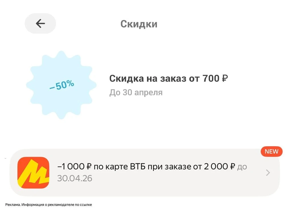 Смотрите личные скидки и промо в Самокате и Яндекс Маркет 🔥