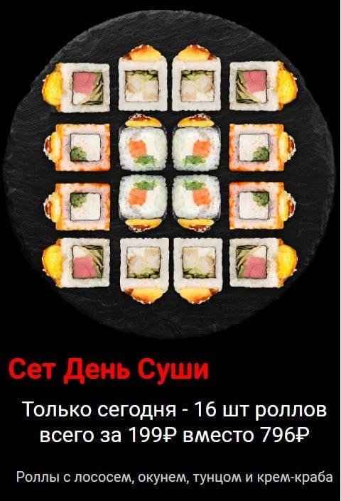 ● Забираем набор из 16 роллов всего за 199₽ в доставке Фудзияма в некоторых городах.