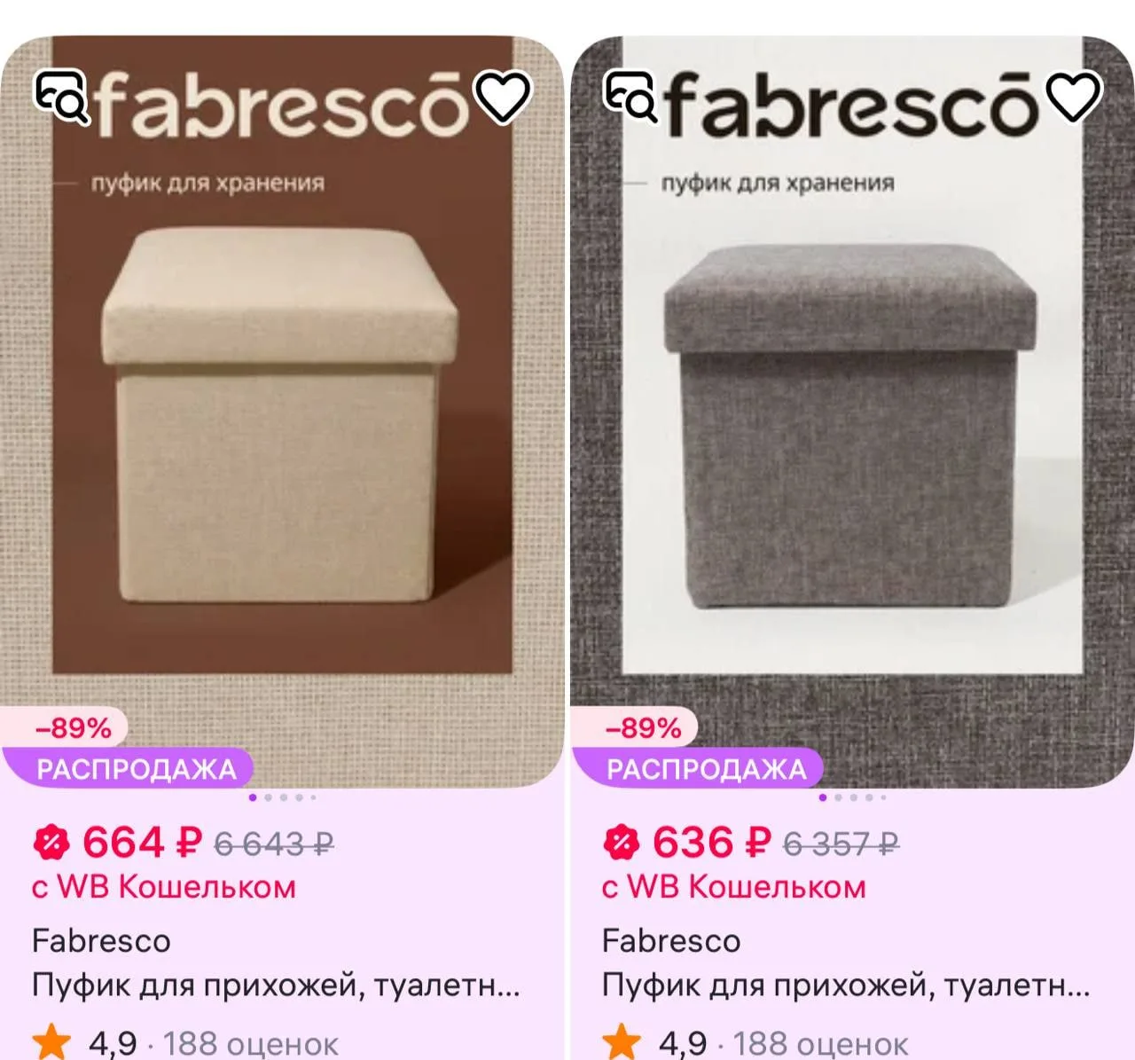Fabresco Пуфик для прихожей, туалетного столика с ящиком для хранения за 664₽ — https://www.wildberries.ru/catalog/823031227/detail.aspx?size=1234965033