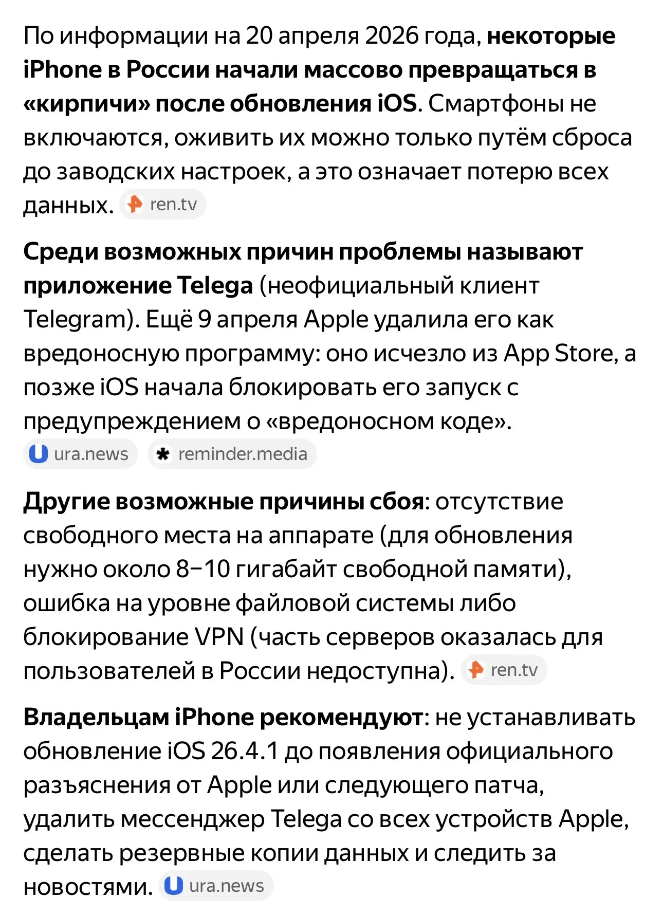P.S видели новости у кого айфон , что у людей превращается в кирпич без восстановления данных 😭