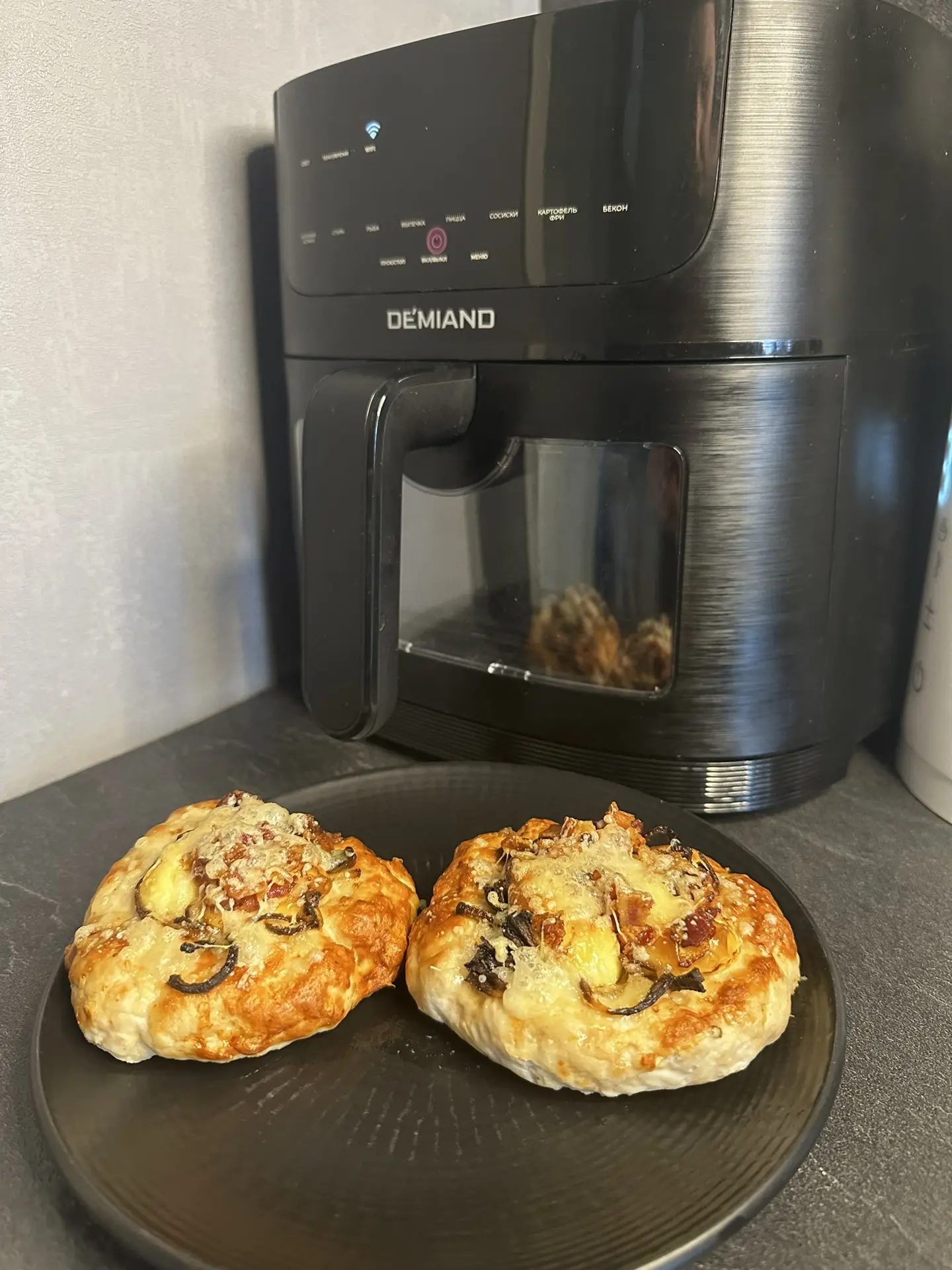Лук режем полукольцами , не много запекаем в духовке или аэрогриле 170 градусов минут 7-8