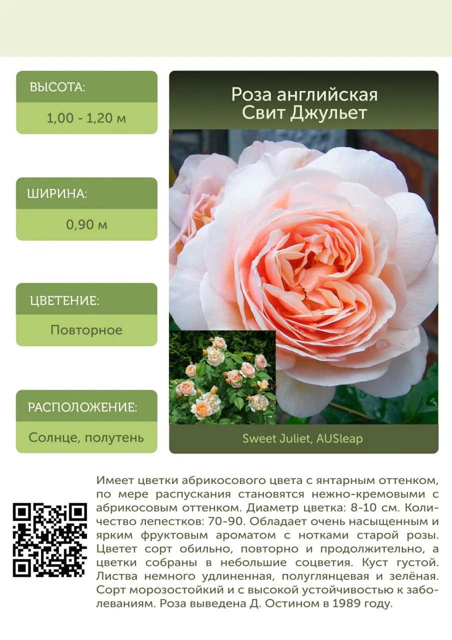 Роза английская Свит Джульет (Sweet Juliet (AUSleap)) — спокойный, аккуратный…