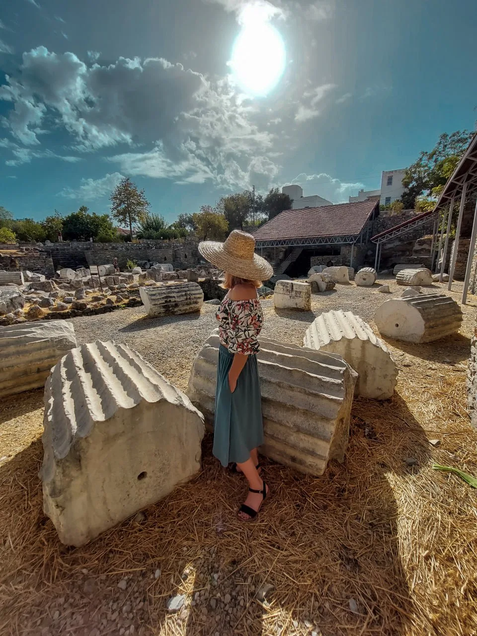 Сейчас на этом месте одни руины, но когда-то здесь стояло огромное 45-метровое здание с 36 колоннами, а на крыше – мраморная колесница с царём и царицей . Построили его больше двух тысяч лет назад для правителя Мавсола . Если чуть-чуть включить воображение, можно представить, как всё это выглядело. Нам такие места очень нравятся.