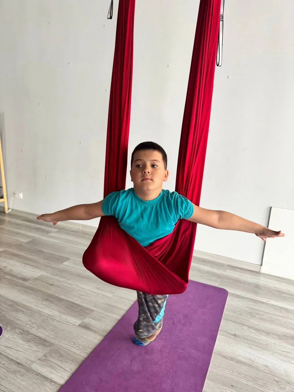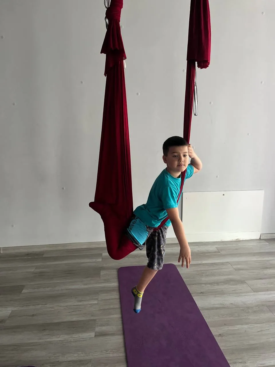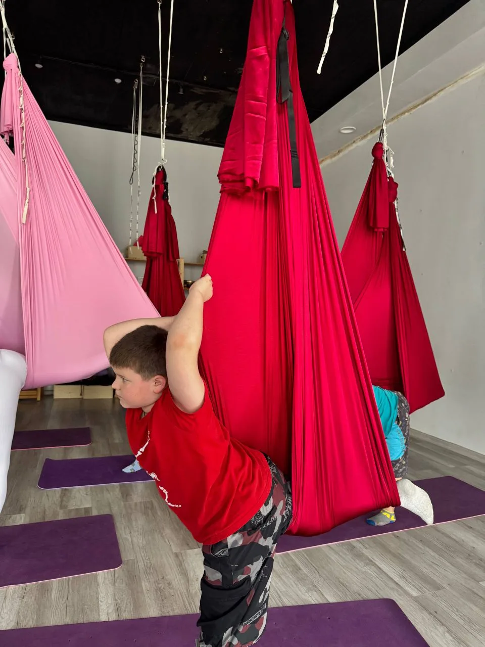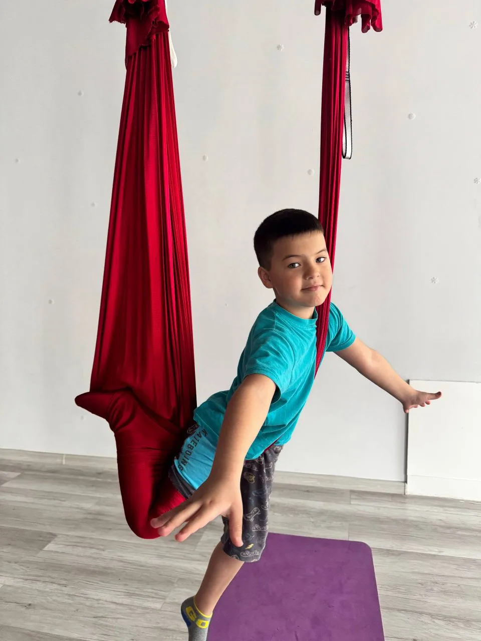 Мальчики продолжают ходить на аэройогу, им ооочень нравится)))