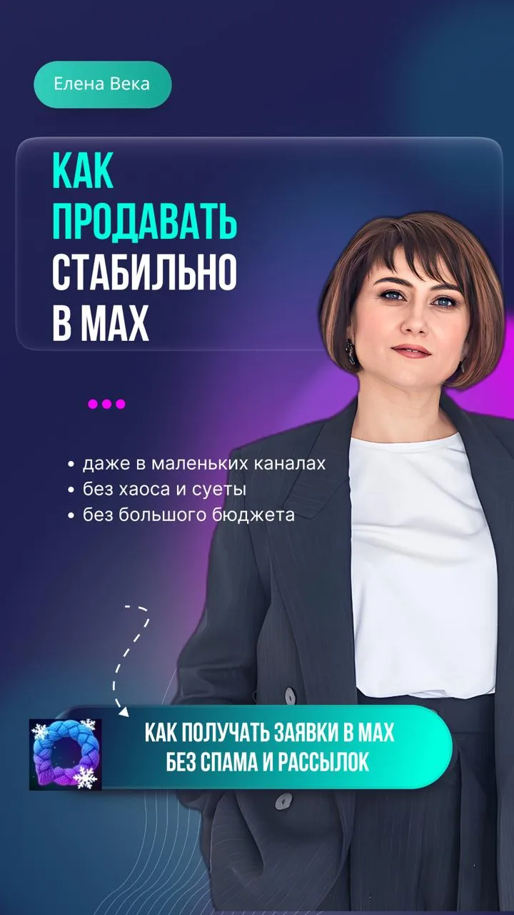 Пишите в личку 👉 https://6max.ru/veka_elena - «MAX» покажу, как вам выстроить привлечение целевой аудитории под ваш проект без слива бюджета.