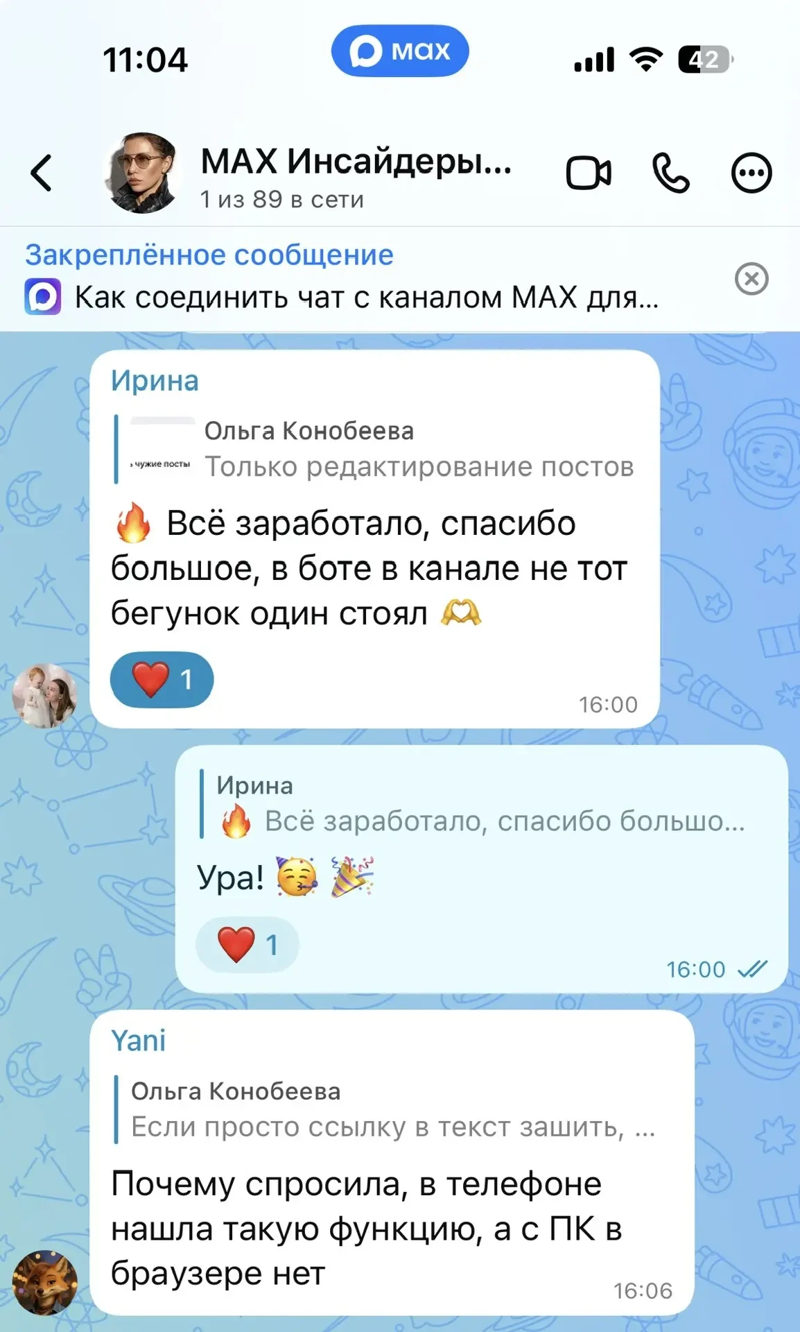 Еще вчера никто толком не понимал, как тут создать канал и через какого бота настроить комментарии, чтобы этот самый бот тебя же и не взломал))🙈, а сегодня мы уже можем подключить к каналу свой чат в МАХ. Все вокруг становится привычнее, удобнее, логичнее.