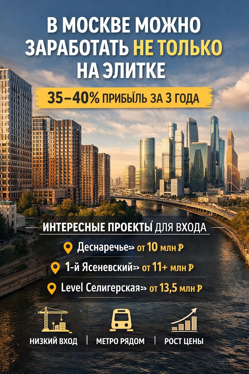 Сейчас рынок не летит как ракета: в феврале 2026 рост цен на строящееся жилье в Москве был около 0,2% за месяц, то есть выбирать надо особенно внимательно.