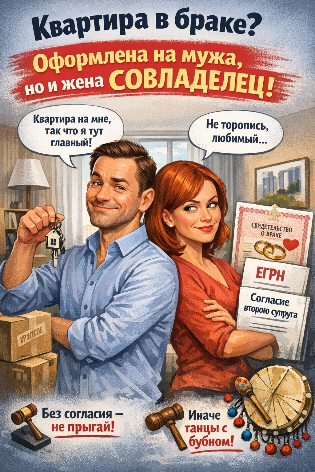 Когда квартира оформлена на мужа, но жена тоже собственник. Сюрприз?