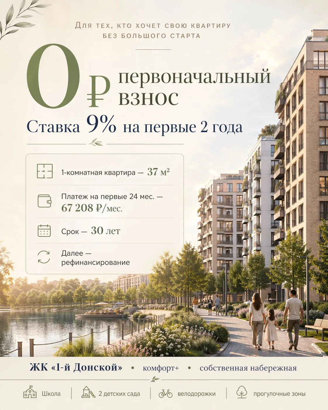 В ЖК « 1-й Донской»запустили программу без ПВ со ставкой 9% на первые 2 года по стандартной ипотеке.