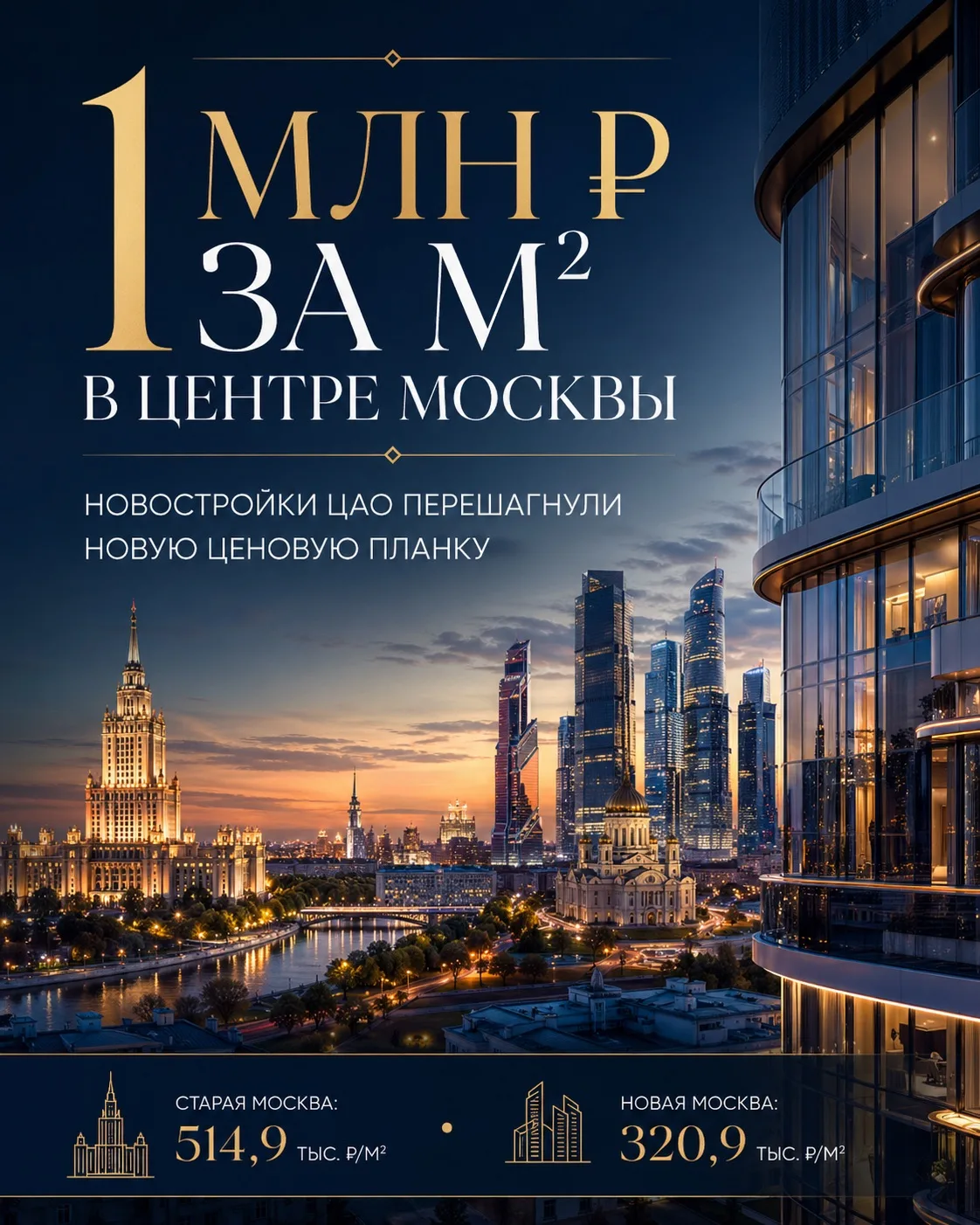 — новостройки Старой Москвы за год выросли на 16,5% — до 514,9 тыс. ₽/м²;
