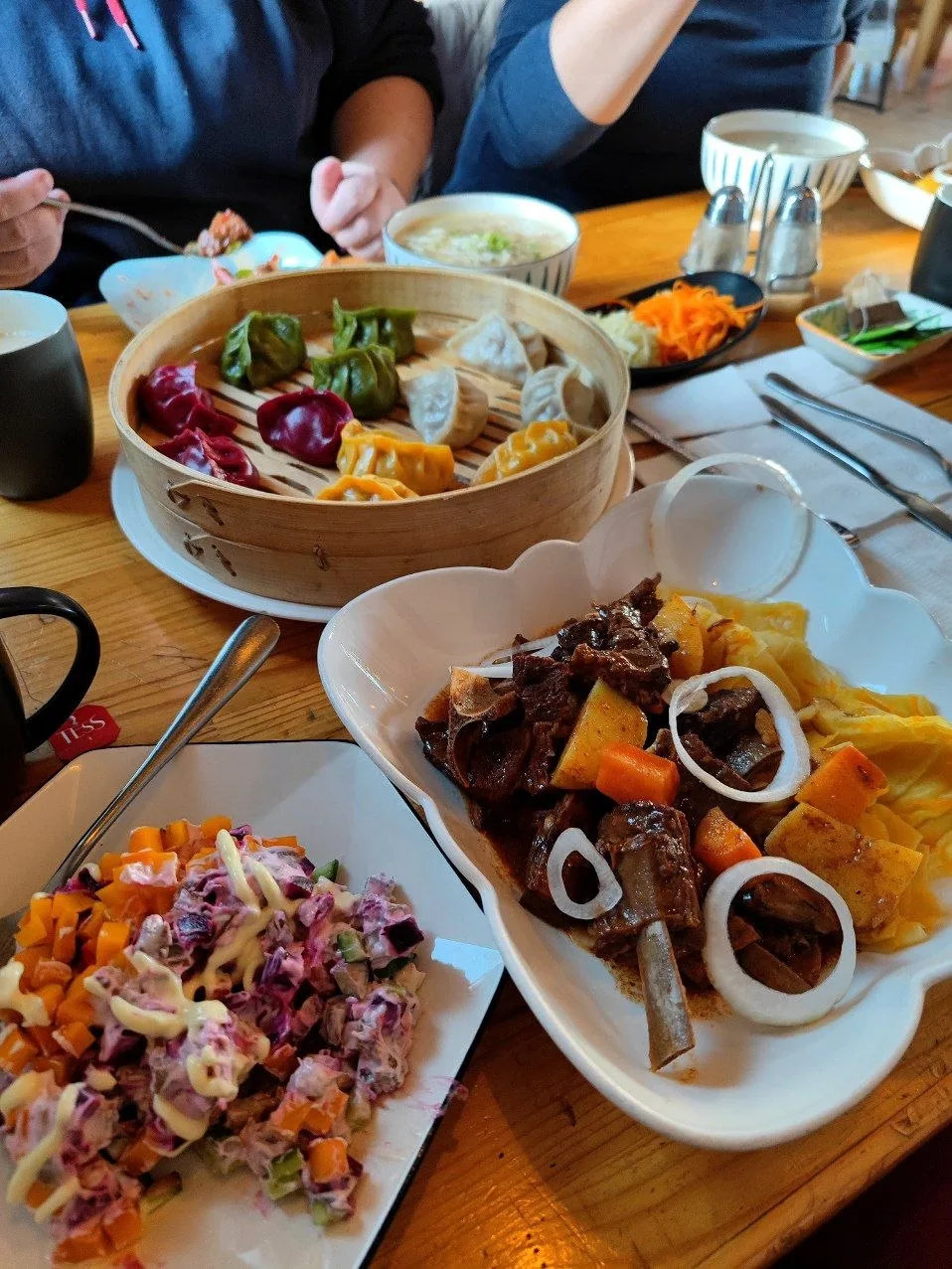 На Алтае редко встретишь аутентичную кухню, все адаптировано под городские желудки. В Монголии такой роскоши нет, национальная еда в лучшем ее виде - мясо с мясом - вкуснейшая баранина, козлятина и говядина, питательное, вкусное.