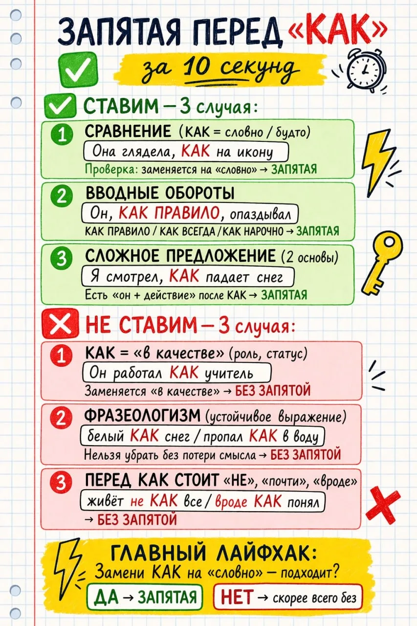 Запятая перед «как» — один из самых частых источников потери баллов.
