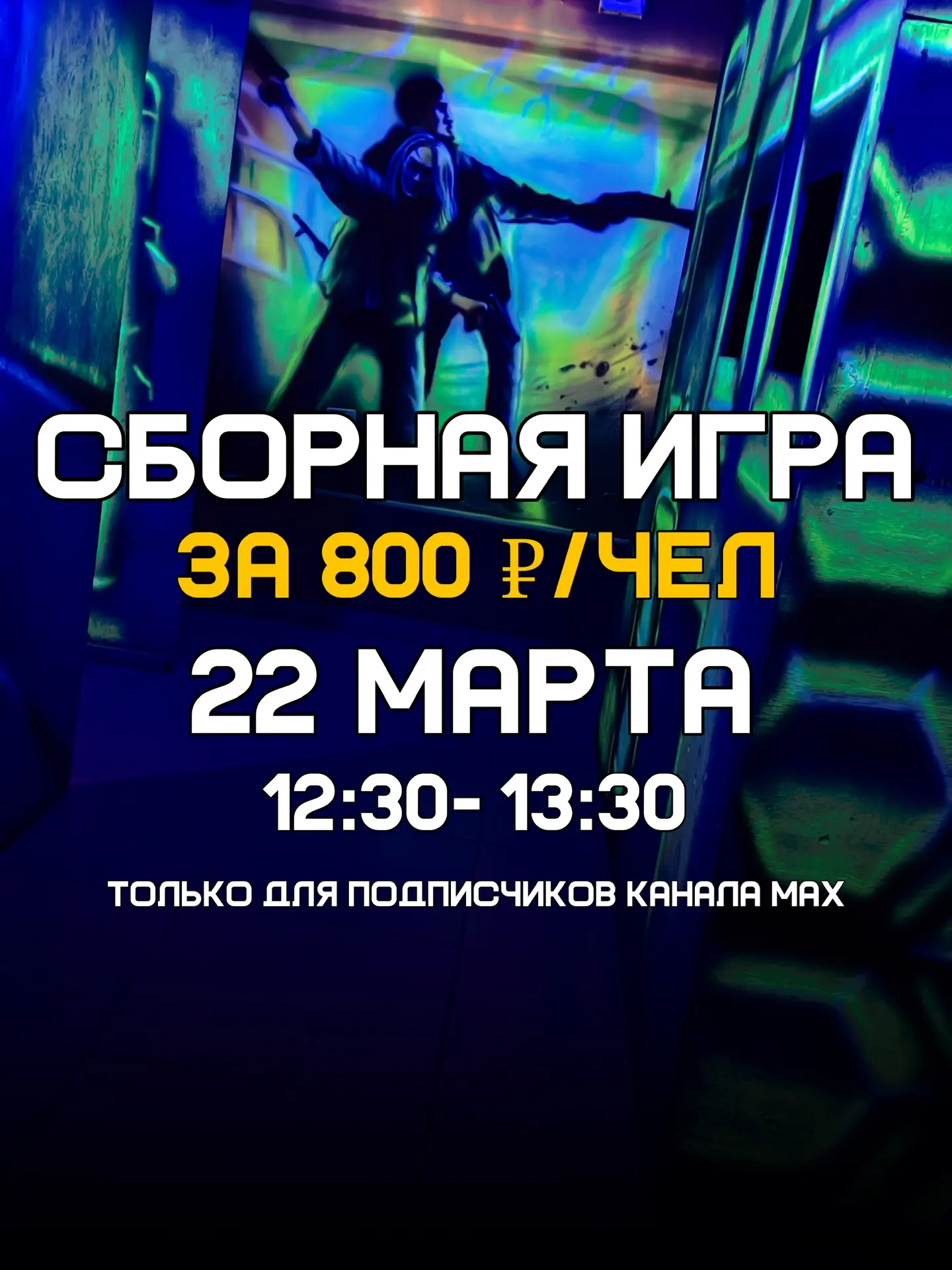 Открытая игра за 800₽/чел — час настоящего лазертага. Приходи один или с другом, команду соберём сами 💣