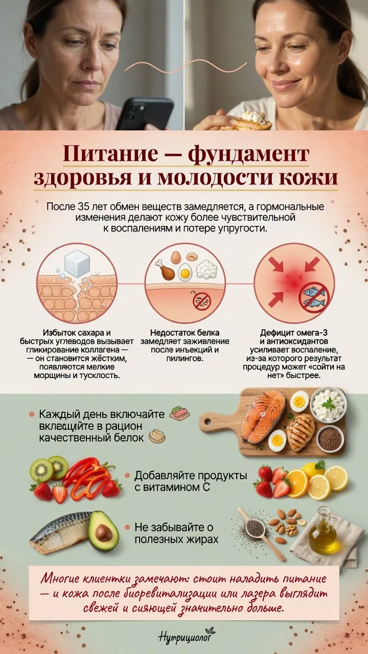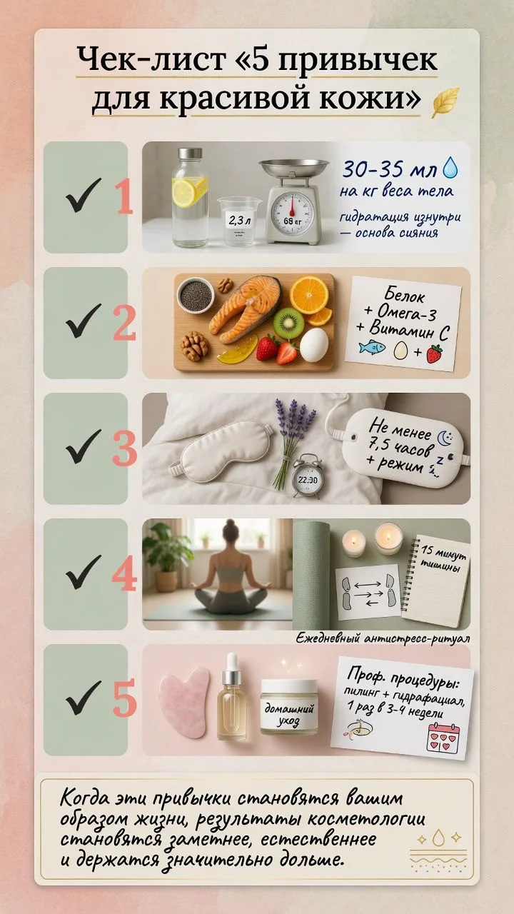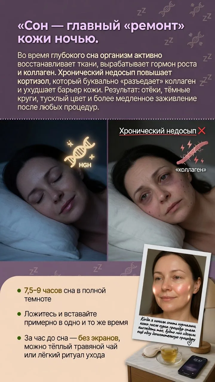 Когда питание наполненное, сон глубокий, а нервная система в покое — кожа отвечает благодарностью: