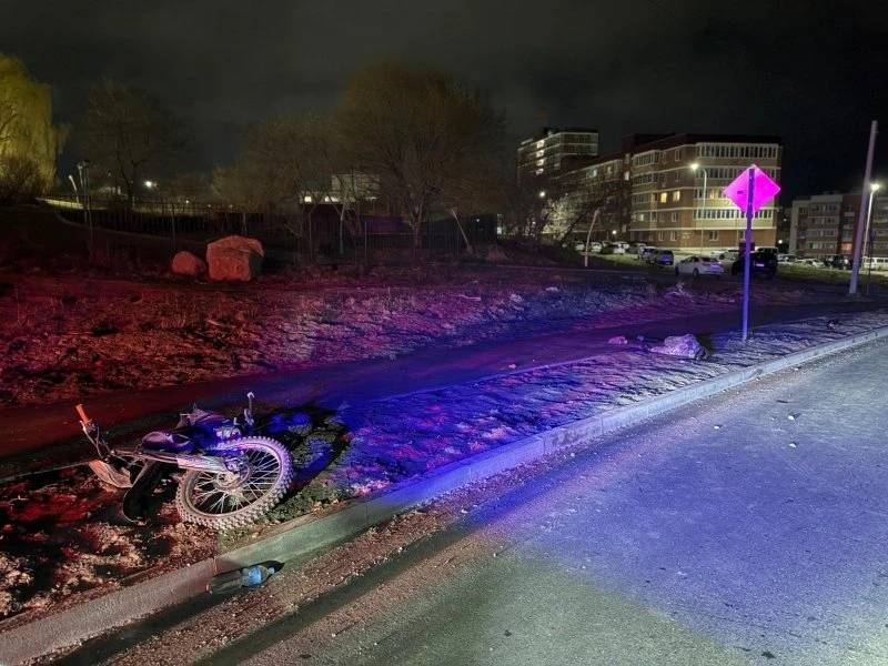 В ночь с субботы на воскресенье в Большом Камне в районе дома №55 на улице Южной молодой человек, управлявший мотоциклом без водительских прав и без регистрации транспортного средства, не справился с управлением на мокрой дороге и врезался в дорожный знак. От полученных травм он скончался на месте до приезда медиков.