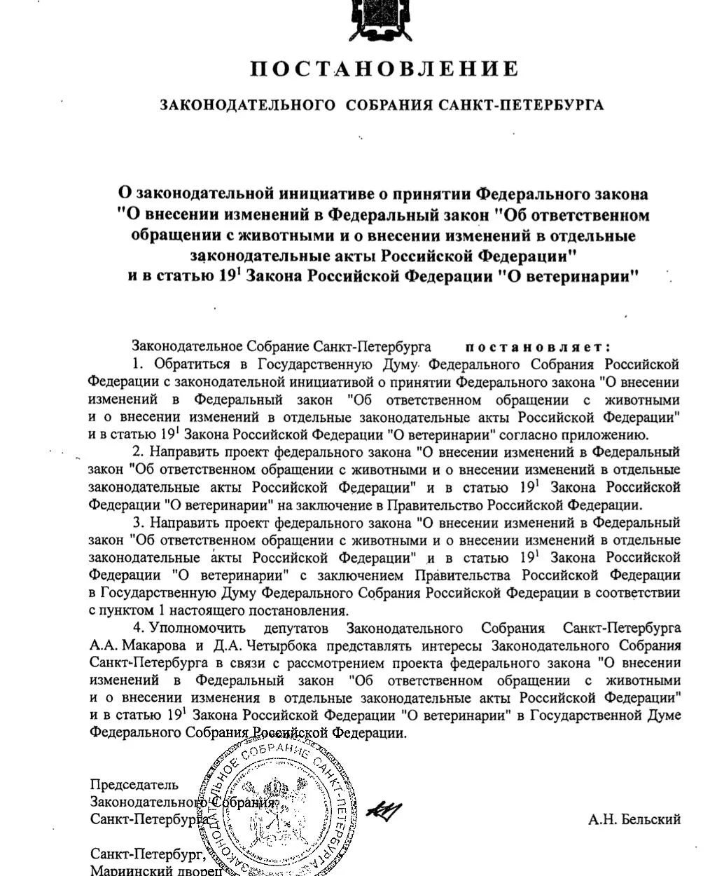 Документ предполагает создание государственного реестра и обязательную регистрацию питомцев.