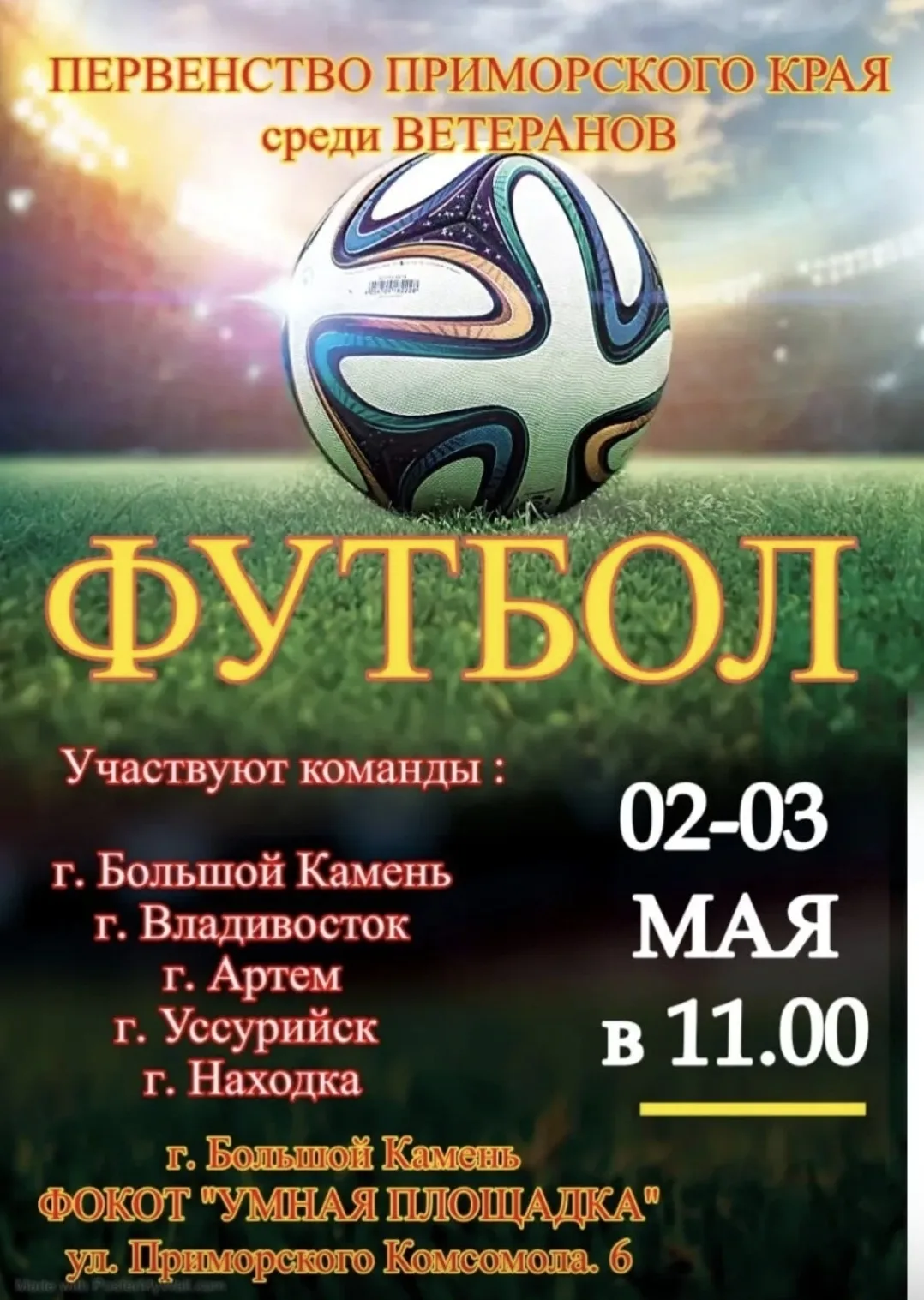 ⚽02-03 мая в 11.00 на ФОКОТ "Умная площадка" пройдет Первенство Приморского края по футболу среди ветеранов⚽