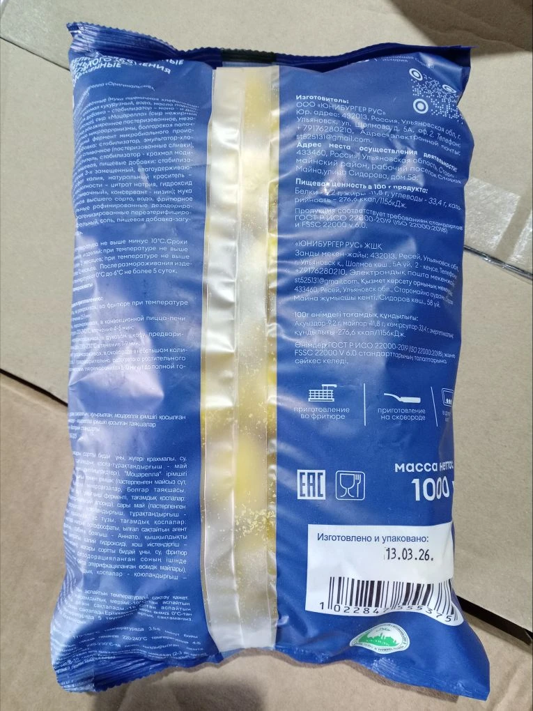 Пачка 1 кг – хватит и семье, и на вечеринку, и для кафе.