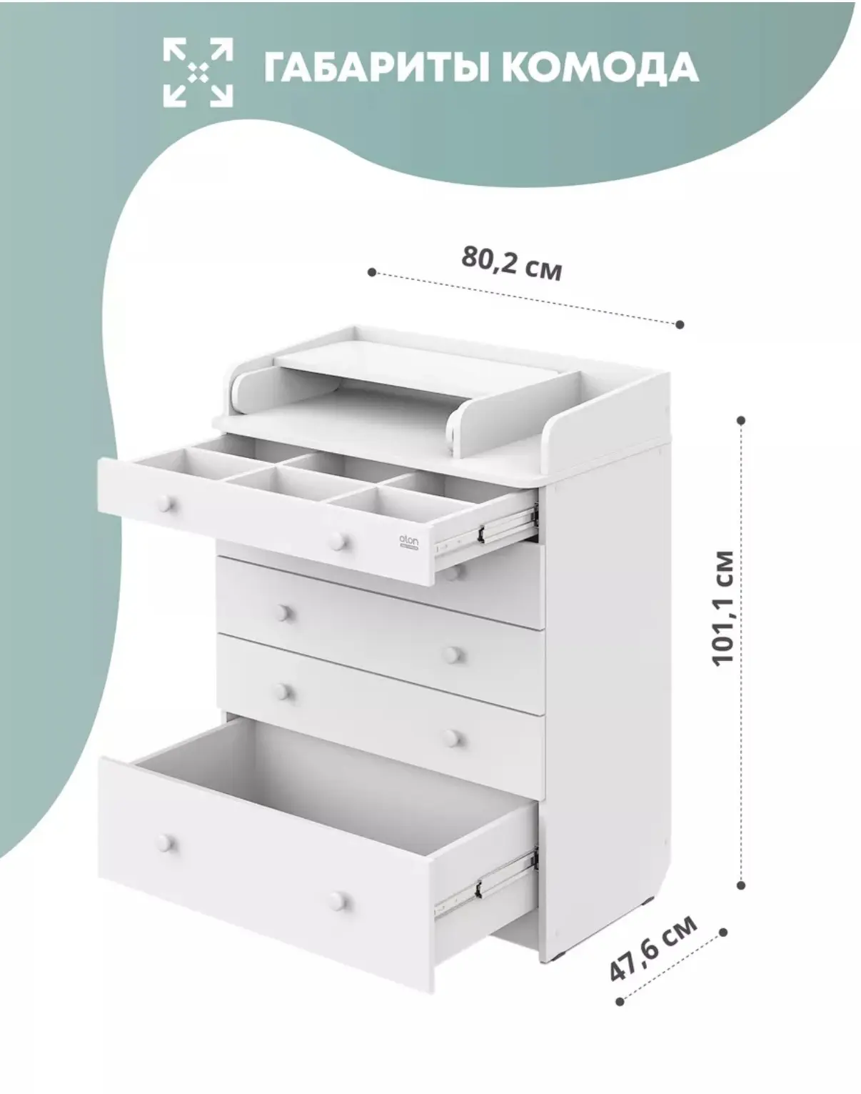 Aton Пеленальный комод с ящиками для вещей и органайзером LEO 805
