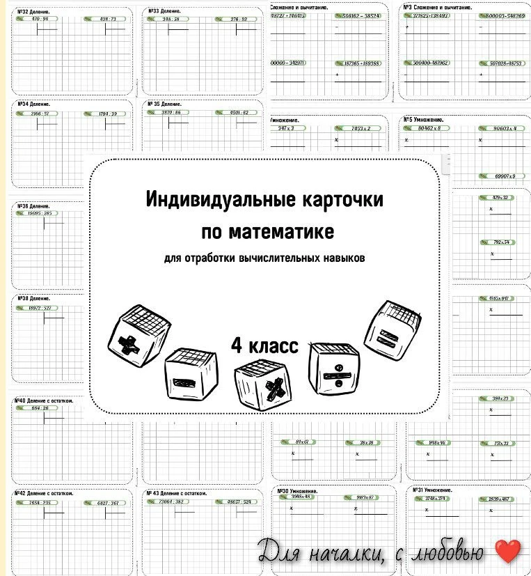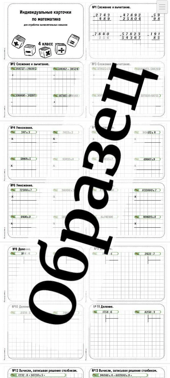 Индивидуальные карточки по математике | 4 класс | 2 часть учебника